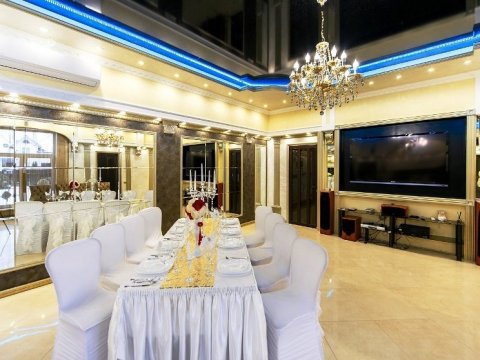 | Мин. цена за сутки (Пт., Сб): | 1300 рублей до 4-х человек, каждый следующий 300 рублей, свадьба - 5000 рублей до 30-ти чел., 7500 рублей до 60-ти, 10000 рублей до 80-ти человек |