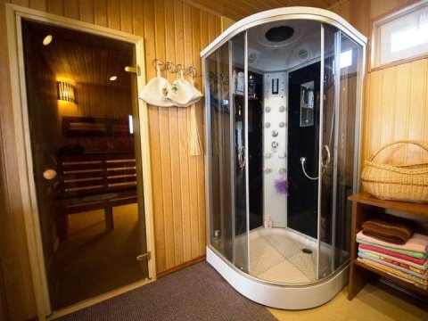 Любителям горячего пара придётся по душе наша сауна, расположенная прямо в доме, на первом этаже. А после баньки гостям предоставится возможность окунуться в небольшом каркасном бассейне, который в летнее время устанавливается возле дома.