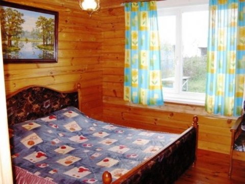 Усадьба расположена на окраине посёлка, всего в 10-15 минутах езды от города.... Для приятного и комфортного отдыха или проведения семейных торжеств предлагаются два гостевых дома. Вам предоставляется возможность снять коттедж на сутки, двое и более длительное время, провести в нём выходные, встретить Новый год, отметить всевозможные праздники. Стены дома готовы принять до 20-ти гостей. К вашим услугам большой двухуровневый коттедж с 5-ю спальнями, холлом и санузлом с душевой кабиной, туалетом и умывальником. На первом этаже расположены просторный банкетный зал с действующим камином и большим обеденным столом. Зал оснащён музыкальной аппаратурой, телевидением и интернетом. Здесь же находится кухня, на которой вы самостоятельно сможете заниматься приготовлением блюд по собственным рецептам. Бытовая техника и вся необходимая посуда в вашем распоряжении. На второй этаж поднимаемся по деревянной лестнице и оказываемся в оформленной в охотничьем стиле гостиной и уютных спальнях. Здесь же ещё один санузел с душем, умывальником и туалетом. Любителям горячего пара придётся по душе наша финская сауна, находящаяся в цокольном этаже коттеджа. Прохладный бассейн, в который окунуться после парилки одно удовольствие, подойдёт как нельзя кстати. А в уютной, обитой деревом комнате отдыха, будет приятно выпить чашечку горячего, целебного чая или употребить что-нибудь покрепче. Второй небольшой домик предназначен для романтического отдыха на двоих. Его также можно забронировать на сутки и более. Стоимость аренды - 15 у.е. с человека. Для приготовления ароматных шашлыков, запечённой рыбы или овощей имеется мангал и все необходимые атрибуты. Во дворе оборудованы две деревянные беседки с большим вместительным столом. В непосредственной близости от дома находится лес - прекрасное место для пеших прогулок, сбора грибов и ягод. В нашем коттедже на сутки курят только в специально оборудованном месте. Для тех, кто прибыл на собственном авто, предусмотрена парковка. Не составит труда добраться до усадьбы и на общественном транспорте. В посёлок без перерыва ходят автобусы и маршрутные такси. Снять коттедж № 35 или другую усадьбу на сутки можно на нашем сайте www.Snimi.net. ОТДОХНУВ В ЛЮБОМ ИЗ ПРЕДСТАВЛЕННЫХ КОТТЕДЖЕЙ, НЕ ЗАБУДЬТЕ ПЕРЕЗВОНИТЬ НАМ, ЧТОБЫ ПОЛУЧИТЬ НЕБОЛЬШОЙ ПОДАРОК ОТ САЙТА.
