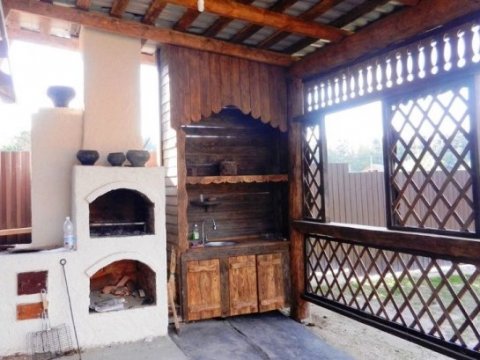 На ухоженной территории усадьбы находится просторная беседка с барбекю, где вы сможете пожарить шашлыки или просто насладиться отдыхом на свежем воздухе. В наличии мангал, шампура, а также казан для приготовления плова или ухи.