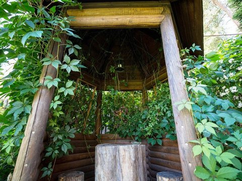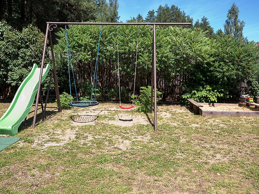 По всему периметру усадьбы раскинулись цветники и зеленые насаждения, имеются уютные беседки. А для любителей активных игр предусмотрена спортивная площадка, где можно поиграть в волейбол и бадминтон.