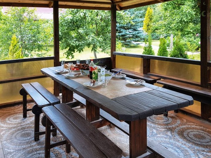 Усадьба расположена в 2 км от Заславля.... В усадьбе 5 спальных комнат с двуспальными кроватями, в двух из них установлены детские кроватки, а в холле еще два раскладных дивана. Таким образом снять усадьбу под Минском с ночлегом сможет компания до 14 человек. К услугам отдыхающих кухня для самостоятельного приготовления еды, оборудованная необходимой бытовой техникой, просторный каминный зал с большим обеденным столом, караоке, спутниковым телевизором и танцевальной площадкой. Удобства расположены в доме - санузел с ванной, горячей водой, стиральной машиной и феном. В коттедже оборудована терраса с подсветкой и навесом, которая станет отличной площадкой для проведения торжеств с количеством приглашенных до 20 человек. Если хочется устроить пикник на свежем воздухе, хозяева предложат разместиться в беседке, рассчитанной на 15 человек. Внутри беседка оснащена камином, встроенным освещением и музыкальной аппаратурой, так что здесь можно засидеться допоздна, наслаждаясь ароматным шашлыком в дружной компании. Гости могут воспользоваться спортивным оборудованием: бадминтоном, настольными играми, дартсом и весело провести время на природе. Помимо традиционных блюд из мяса, в усадьбе можно наловить рыбу в пруду, находящемся в 50 метрах от дома, и приготовить ее на огне. Еще одно водное пространство доступное отдыхающим - это озеро с чистой водой и прекрасным ухоженным пляжем в 500 метрах от усадьбы. Спокойный отдых гарантирован в бане - месте, где можно отдохнуть и душой, и телом. Баня в усадьбе расположена в отдельном здании, оснащенном качественной финской парилкой. Помимо этого здесь есть терраса, комната отдыха с телевизором, столом и диваном, установлен мангал. В распоряжении гостей, приехавших на личном транспорте, стоянка, рассчитанная на 5 автомобилей. Усадьба предназначена исключительно для семейного отдыха, проведения различного рода фуршетов и торжеств. Извините, студентов просьба не беспокоить. Снять коттедж № 63 или другую усадьбу на сутки можно на нашем сайте www.Snimi.net. ОТДОХНУВ В ЛЮБОМ ИЗ ПРЕДСТАВЛЕННЫХ КОТТЕДЖЕЙ, НЕ ЗАБУДЬТЕ ПЕРЕЗВОНИТЬ НАМ, ЧТОБЫ ПОЛУЧИТЬ НЕБОЛЬШОЙ ПОДАРОК ОТ САЙТА.