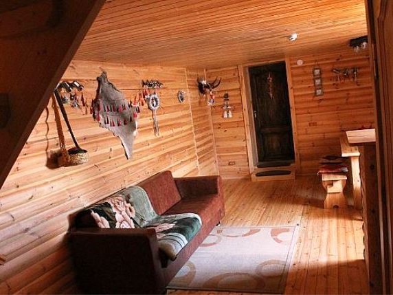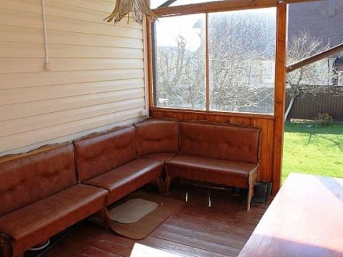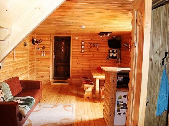 На первом этаже коттеджа на сутки находится гостиная с двуспальным диваном и телевизором, спутниковым TV, DVD и караоке. Во всем доме есть интернет Wi-Fi.