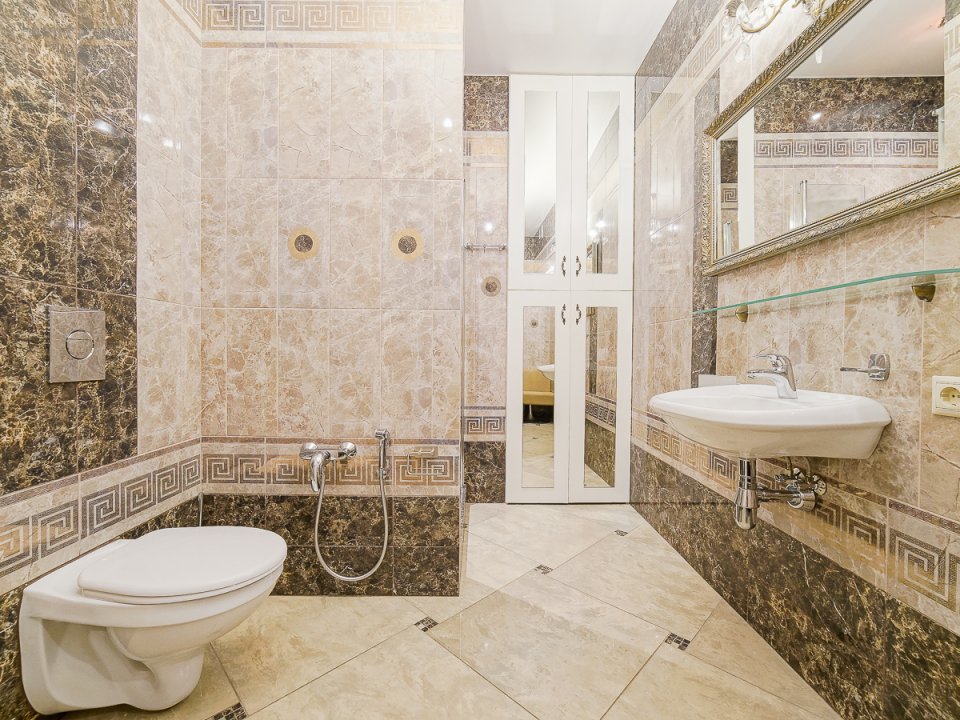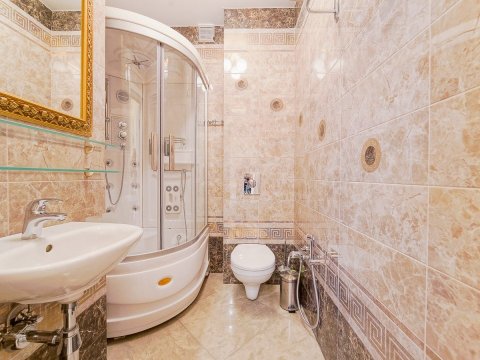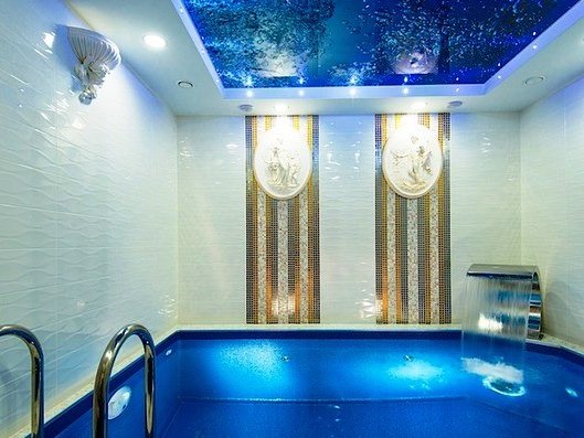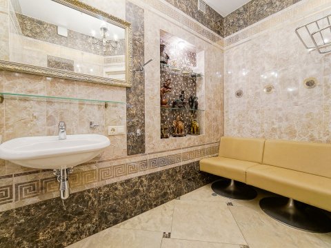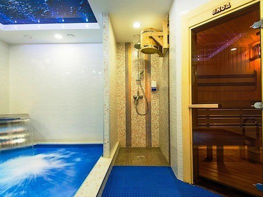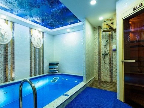 Самым строгим ценителям горячего пара придётся по душе финская сауна с лечебными камнями, тёплым бассейном 3×4 метра с водяной пушкой, гидромассажем и водопадом. Любители контрастных процедур оценят наличие бочки с ледяной водой. Простыни, банные шапочки и тапочки предоставляются бесплатно. За дополнительную плату будут предложены напитки и соления, махровые халаты и банные полотенца от Versace.