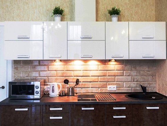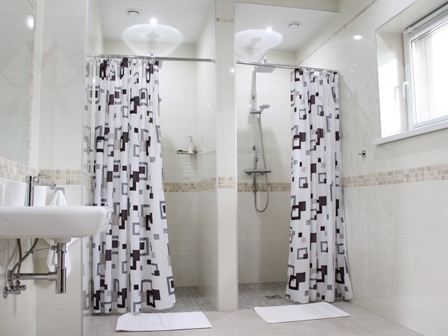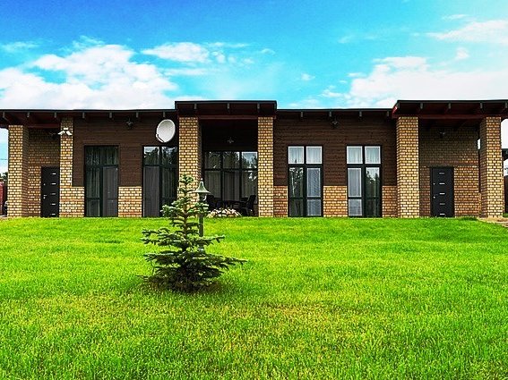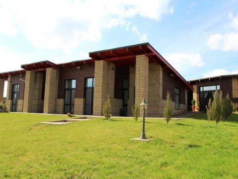 Помещения оборудованы гостиной с мягким диваном, кухней, спальней с большой кроватью, просторной душевой комнатой и туалетом. На кухне есть вся необходимая бытовая техника и посуда для приготовления любимых блюд. Общая площадь одной части дома - 55 кв. метров.