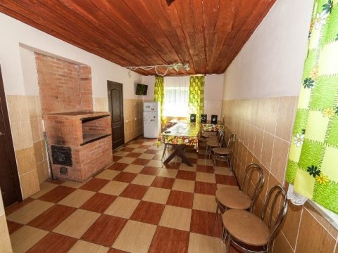 Вторая зона отдыха усадьбы - большой 2-ух этажный дом с банкетным залом на 60-70 человек (см. коттедж № 142). Дом располагает 14-ю спальными местами (3 спальни), просторной кухней с печью, 4-мя санузлами и 2-мя душами. На территории коттеджа на сутки разбит фруктовый сад и обустроена терраса с местом для приготовления шашлыка. Все принадлежности для этого предоставляются, вам необходимо лишь позаботиться об углях.