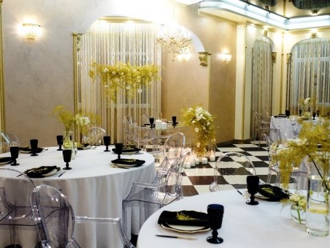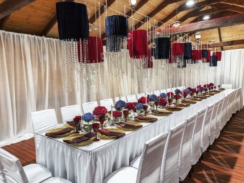 | Мин. цена за сутки (Пт., Сб): | 1300 рублей до 4-х человек, каждый следующий 300 рублей, свадьба - 5000 рублей до 30-ти чел., 7500 рублей до 60-ти, 10000 рублей до 80-ти человек |