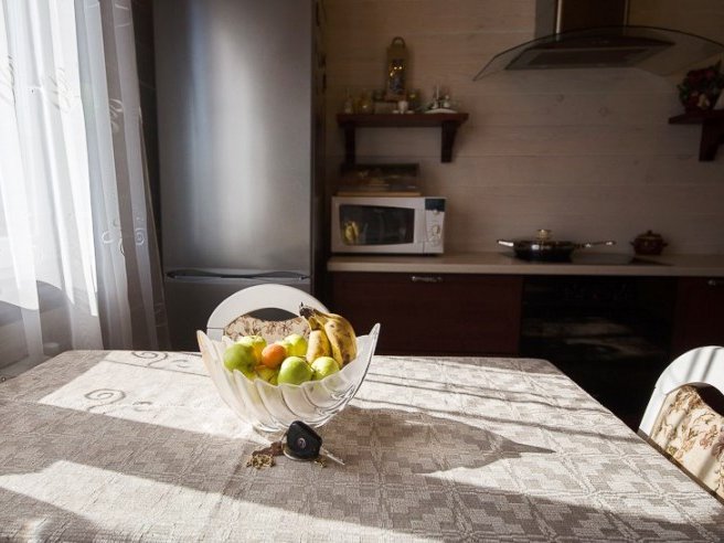 На первом этаже расположена кухня, оборудованная всей необходимой бытовой техникой и посудой. Вы можете самостоятельно заняться приготовлением любимых блюд или же, если такого желания нет, добродушная хозяйка поможет вам в этом вопросе.