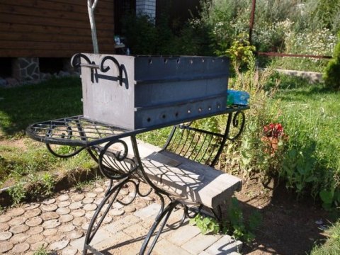 На открытой веранде дома будет удобно организовать посиделки на свежем воздухе. Оборудовано специальное место с кованым мангалом для приготовления шашлыка.
