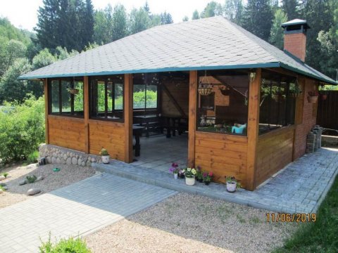 На территории усадьбы размещена беседка закрытого типа с печью-барбекю, в которой комфортно можно организовать праздничное мероприятие в составе 25-30 человек.