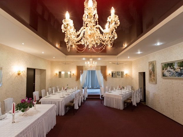 Прежде всего мы предлагаем вам отпраздновать торжество в шикарном и большом банкетном зале на 80 человек.... Зал оформлен в благородных красных тонах, декорирован богато и вместе с тем с безупречным чувством стиля. Организация самого банкета и обслуживание гостей будут на высшем уровне. Если предполагается, что свадьба продлиться дольше одного дня, мы будем рады предложить вам расселить гостей в комфортабельных меблированных домиках, находящихся на территории поместья. Для ночлега прилагаются 2 гостевых домика: в первом 3 комнаты с отдельными входами, во втором – 2 комнаты с отдельными входами. Также гости усадьбы могут разместиться на втором этаже в главном доме – доступны 3 просторные комнаты. На первом этаже дома располагается банкетный зал и есть специально подготовленная комфортная комната для молодоженов. Возможное размещение на ночь до 60 человек. Общее количество спален во всех гостевых домах - 9. Дома оснащены всем необходимым для комфортного пребывания: уютные спальни, оборудованные бытовой техникой кухни, санузлы с душевыми кабинами, всегда свежее белье и необходимые туалетные принадлежности. Территория усадьбы под Минском украшена элементами ландшафтного дизайна: ухоженные цветы, деревья, элементы декора. Помимо этого, хозяева усадьбы выращивают свежие фрукты и овощи, которые станут прекрасным дополнением к вашему повседневному рациону или праздничному банкету. В большом пруду можно ловить рыбу, а потом приготовить на мангале, который расположен на приусадебной территории. На территории находится большая открытая беседка: здесь проводятся церемонии выездной регистрации, а затем площадка используется как танцпол. Также есть две небольшие беседки, рассчитанные на компанию из 4-6 человек. Порадует вас комфортабельная сауна, которая поможет расслабиться и насладиться волшебной атмосферой блаженства. Баня оборудована всеми удобствами. Имеется зал с камином и бассейном. К бане прилегает терраса со вторым бассейном под открытым небом. Имеется парковка на 17 машиномест. Персонал усадьбы всегда учитывает пожелания отдыхающих, организуя не только прекрасный отдых в уютном доме, но и радуя разнообразными активными развлечениями и спортивными состязаниями. Снять коттедж № 43 или другую усадьбу на сутки можно на нашем сайте www.Snimi.net. ОТДОХНУВ В ЛЮБОМ ИЗ ПРЕДСТАВЛЕННЫХ КОТТЕДЖЕЙ, НЕ ЗАБУДЬТЕ ПЕРЕЗВОНИТЬ НАМ, ЧТОБЫ ПОЛУЧИТЬ НЕБОЛЬШОЙ ПОДАРОК ОТ САЙТА.