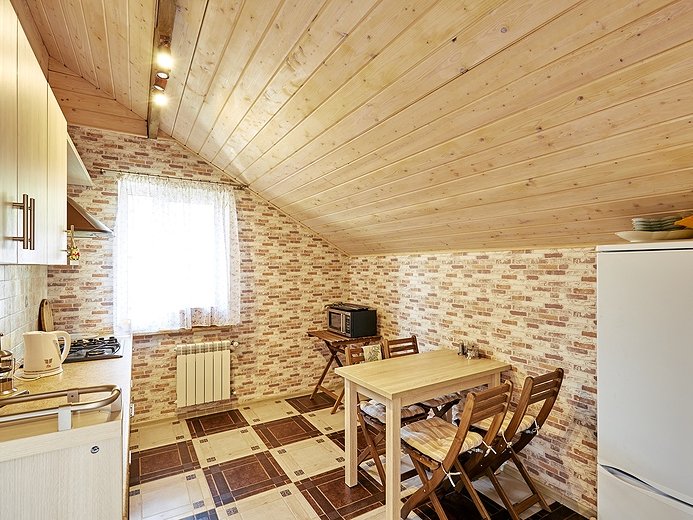 На кухне имеется вся необходимая техника и посуда для приготовления любимых блюд. Для удобства наших постояльцев оборудованы 2 санузла. Всё тщательно продумано для уюта и комфорта - удобная мебель, беспроводной интернет и спутниковое телевидение, караоке.