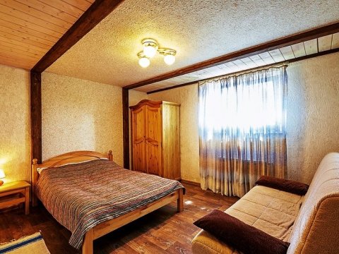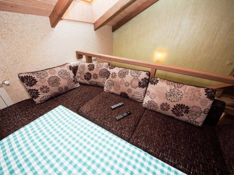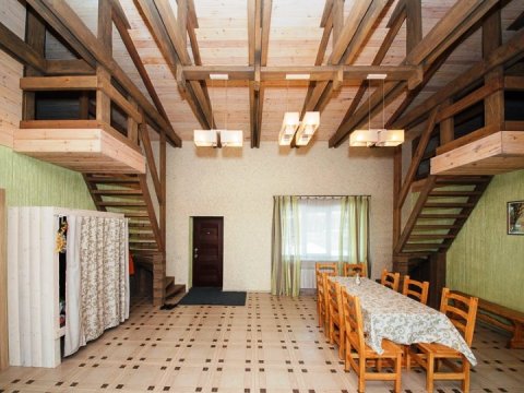 Коттедж довольно большой и поразит вас простором своих покоев, интерьер которых выполнен с использованием только натуральных материалов. В распоряжении наших гостей просторная гостиная, в которой можно провести торжество в составе до 30-ти человек. Для ночного отдыха предлагаем вам расположиться в 6-ти уютных спальных комнатах.