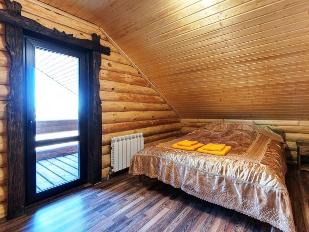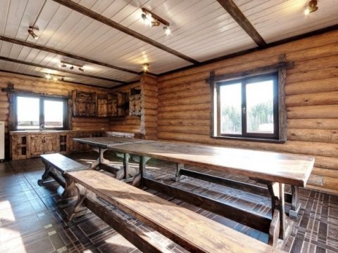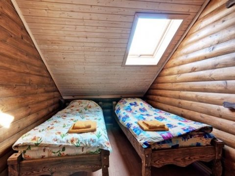 Оба дома построены из экологически чистых материалов - срублены вручную из сосновых бревен. В гостевом доме на ночь с комфортом могут разместиться до 10-ти человек. В полное распоряжение гостей предоставляются 4 просторные спальные комнаты, две душевые кабины и санузел. Кухня, оборудованная всей необходимой техникой и посудой, позволяет самостоятельно готовить пищу.