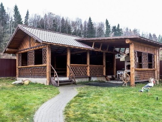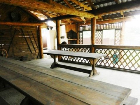 На ухоженной территории усадьбы находится просторная беседка с барбекю, где вы сможете пожарить шашлыки или просто насладиться отдыхом на свежем воздухе. В наличии мангал, шампура, а также казан для приготовления плова или ухи.