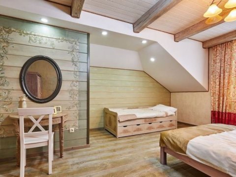 Усадьба находится всего в 30-ти километрах от Минска, к нам легко добраться как на машине, так и на общественном транспорте.... Идеальное место чтобы проводить свадьбы, корпоративы, юбилеи и Дни рождения, а также отдыхать в маленькой, теплой компании близких людей или устроить романтический вечер с отдыхом в VIP апартаментах. Банкетный зал усадьбы площадью в 200 кв.м. и максимальной вместимостью до 90 гостей полностью пропитан духом Италии: на стенах в монохромных тонах изображена кистью Флоренция и Венеция, потолок расписан вручную. Провести мероприятие можно также и на свежем воздухе на специальной площадке — до 80 человек либо во втором БАНКЕТНОМ ЗАЛЕ площадью 60 кв.м. — до 30 человек. Терраса идеально подходит для проведения свадеб и корпоративов — это современная альтернатива шатрам и беседкам. Возможна организация питания в формате кейтеринг, блюда от шеф-повара, домашняя и национальная белорусская кухня. К вашим услугам предоставляется шикарная баня с бассейном и комнатой для отдыха с аэрохоккеем. Парная не оставит равнодушными самых строгих ценителей банных процедур. ПРЕДОСТАВЛЯЕМЫЕ УСЛУГИ: Завтрак + ужин 45,00 руб. / чел. ПРИ БРОНИРОВАНИИ УСАДЬБЫ НА ДВОЕ СУТОК И БОЛЕЕ ПРЕДОСТАВЛЯЮТСЯ СУЩЕСТВЕННЫЕ СКИДКИ. Снять усадьбу № 6 или другой коттедж на сутки можно на нашем сайте www.Snimi.net.