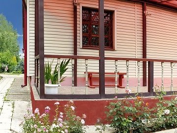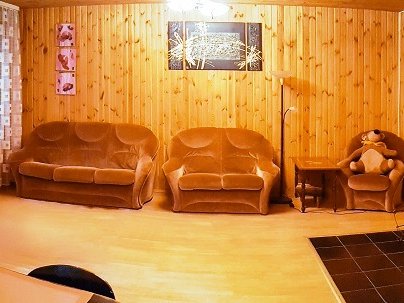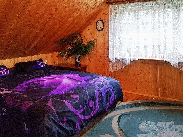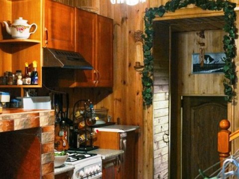 В распоряжении гостей двухэтажный дом, отделанный деревом и украшен картинами, декором и цветочными композициями. Коттедж на сутки готов принять постояльцев в любое время года.